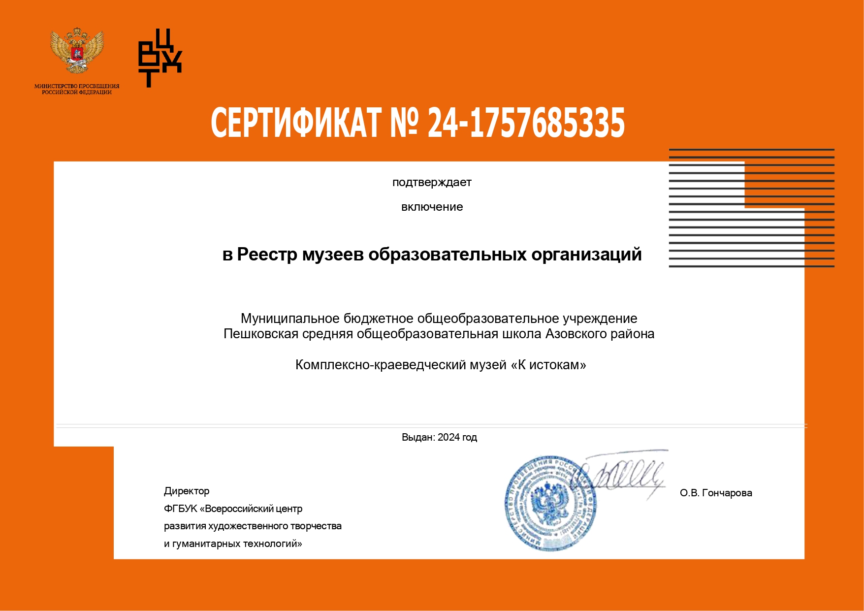 Полное наименование музея: школьный комплексно - краеведческий музей «К истокам» МБОУ Пешковской СОШ, открытый для свободного посещения, работающий на общественных началах.